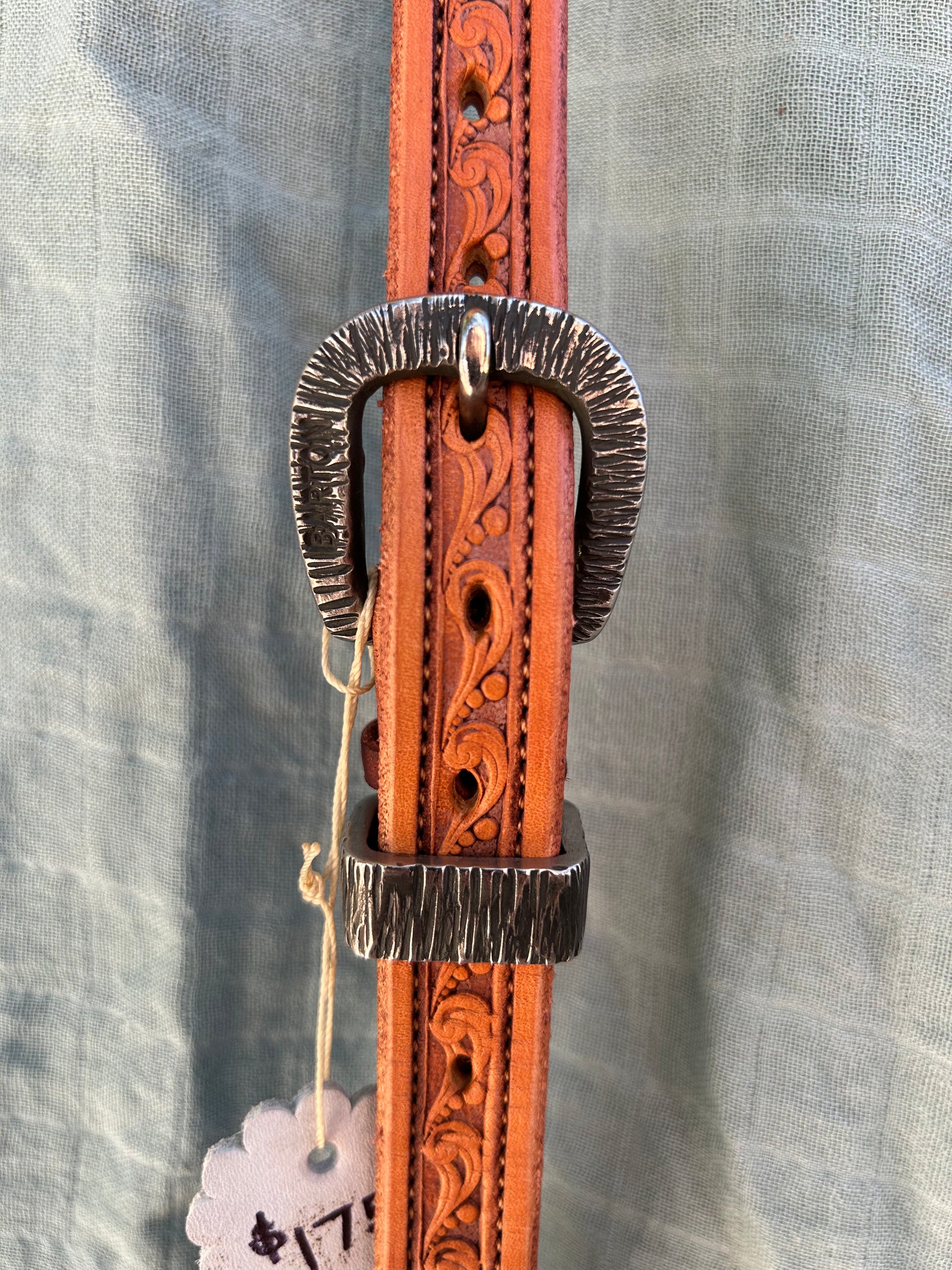 Fancy Split Ear headstalls with handmade forged buckles by Ty Barton.